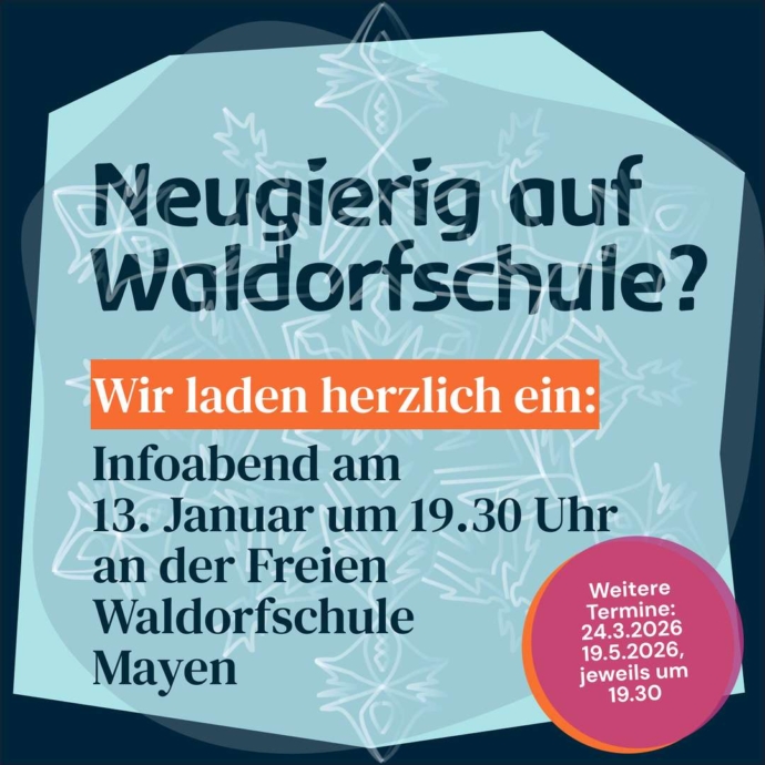 Infoabende an der Freien Waldorfschule Mayen Namen-Tanzen, Singen und Klatschen, und das alles ohne Noten: Zahlreiche Klischees kursieren über das Konzept der Waldorfschulen. An diesem Info-Abend am 13. Januar 2026 informieren die Lehrerinnen Claudia Ofzareck und Jenny Steffes-Laux, was es damit auf sich hat, wie sich der Unterricht wirklich gestaltet und welche Kompetenzen die Kinder…